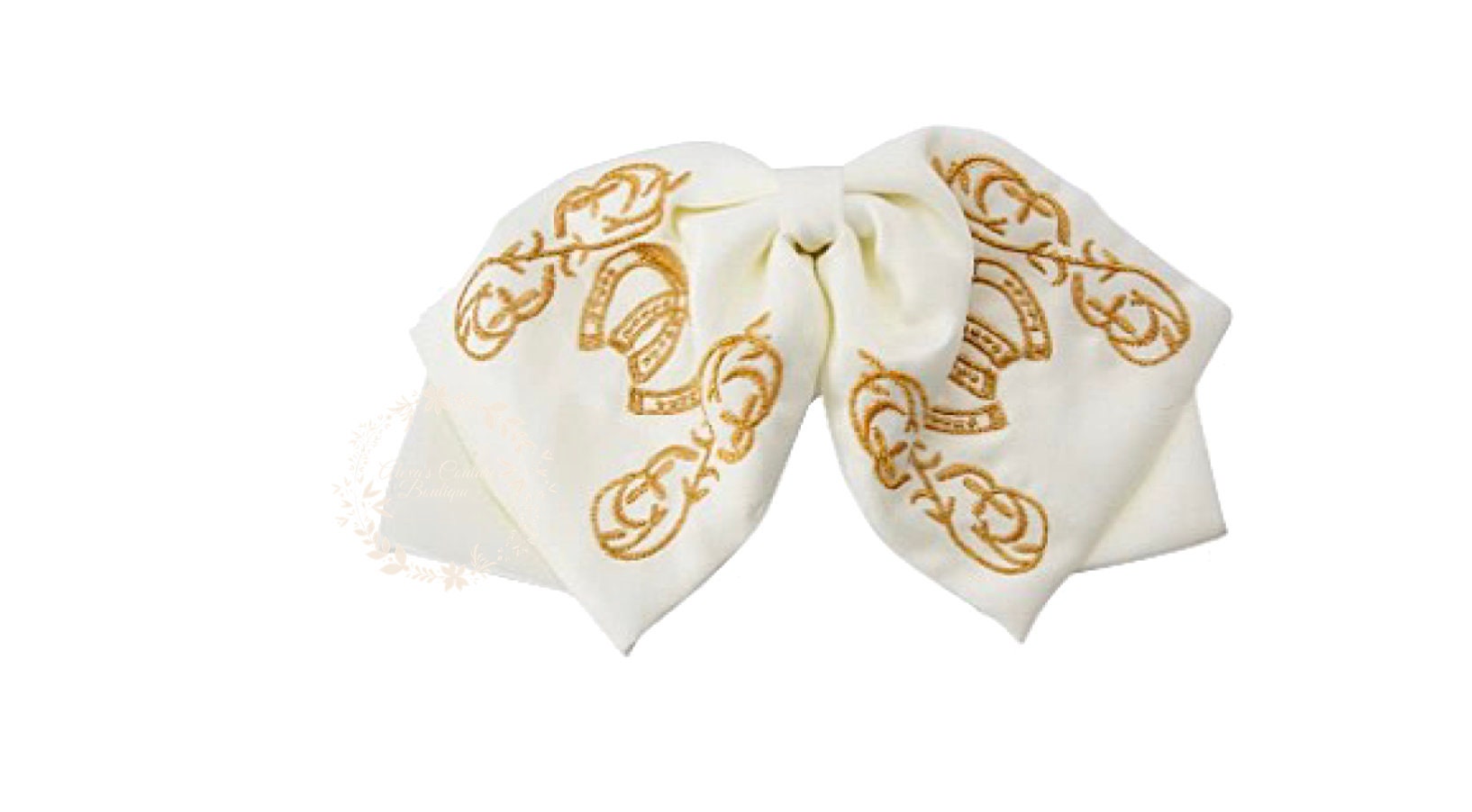 Let's just say the picture describes itself, how cute is this charro bow with a beautiful embroidered design! Perfect for any special occasion, especially when it's a traditional quince, baptism "bautizó", first communion "primera comunión" and classic traditional birthday.