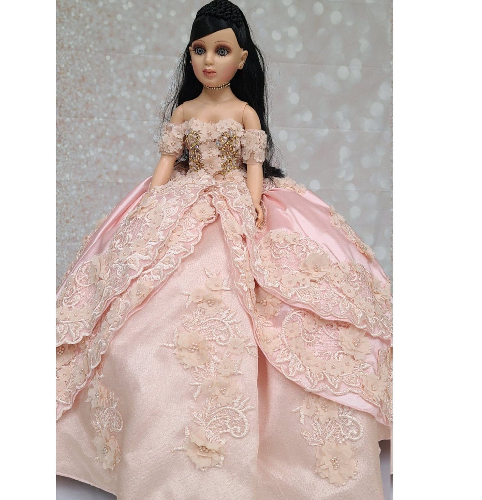 We can make this doll in many colors. Each doll will be made to order so please send us the picture of the quinceanera dress.