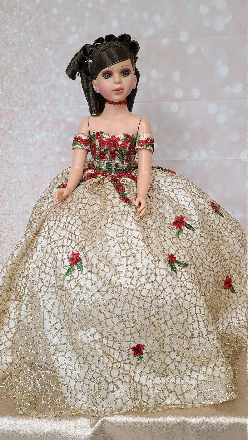 We can make this doll in many colors. Each doll will be made to order so please send us the picture of the quinceanera dress.